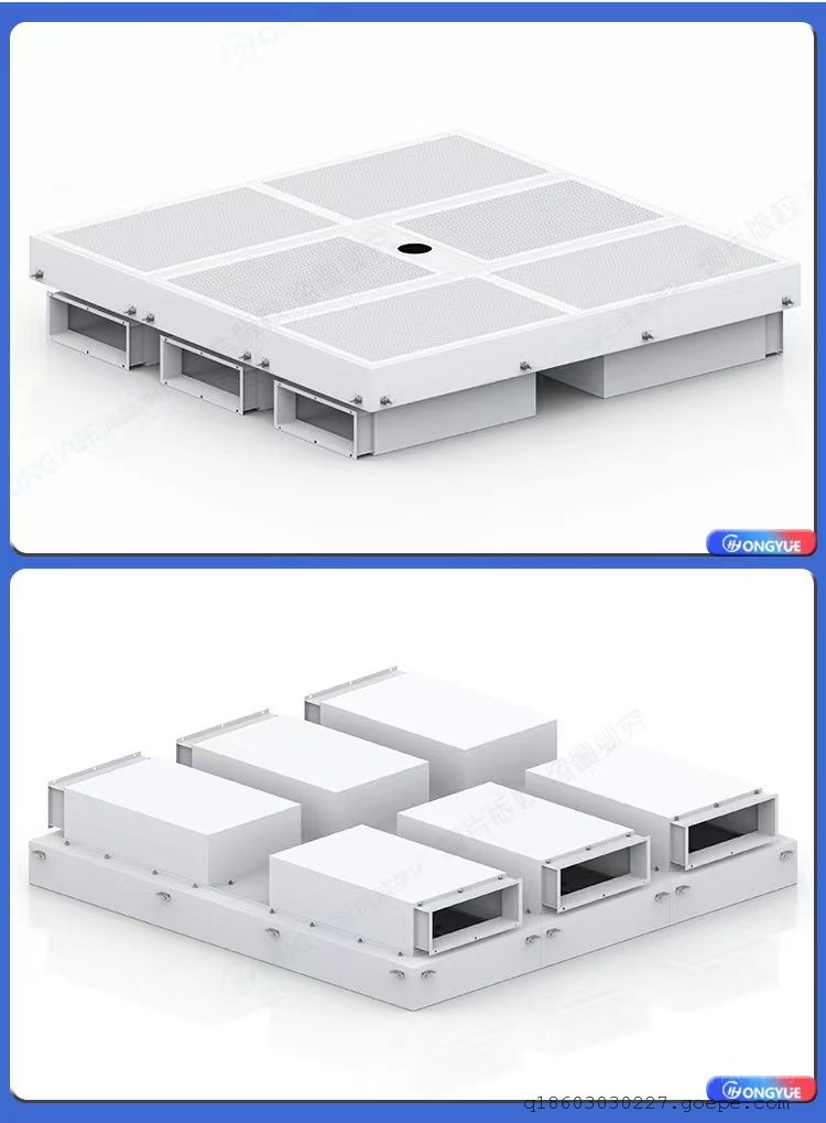 D 均流模式:多块网孔板组合,出风均韵,静电粉末喷涂,和墙顶面同色,表面效果好;