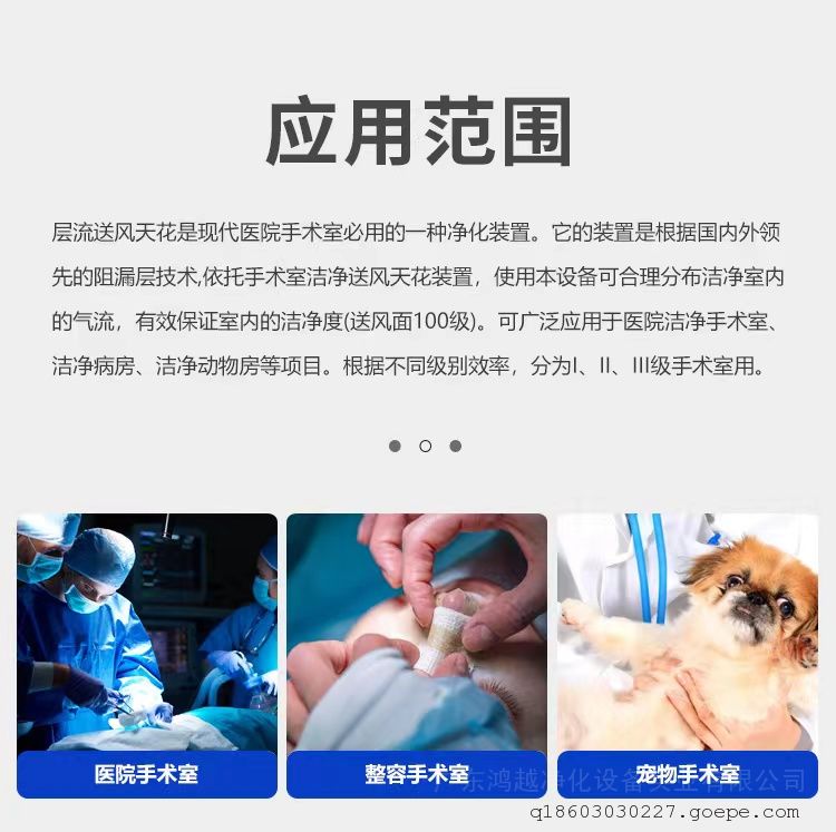 使用场合 Ⅰ级特别洁净手术室 Ⅱ级标准洁净手术室 Ⅲ级一般洁净手术室