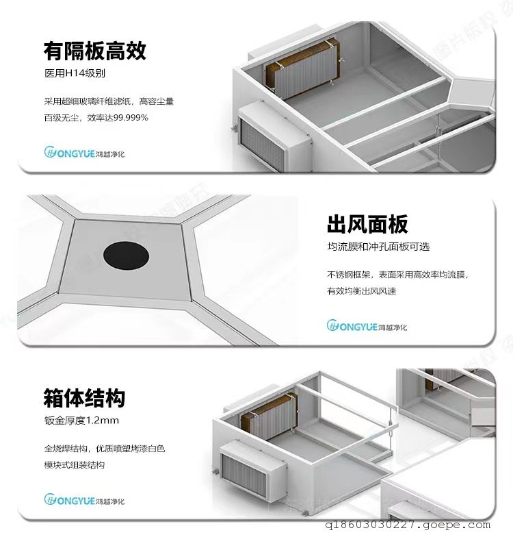 - 鸿越手术室层流送风天花层流罩牙科宠物手术室百级洁净送风口SFTH-3